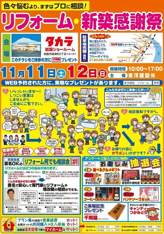 当社が開催する新築のイベントは「新築のホームページ」に掲載していますから、